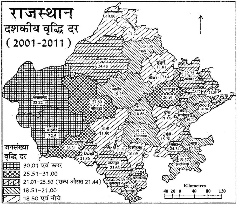 वर्ष 2011 के दशक में जनसंख्या वृद्धि दर :- 21.30%